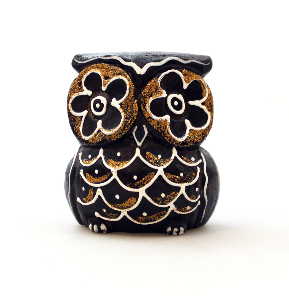 Uil 9 cm bruin/goud hout, SA Bali - Indonesie