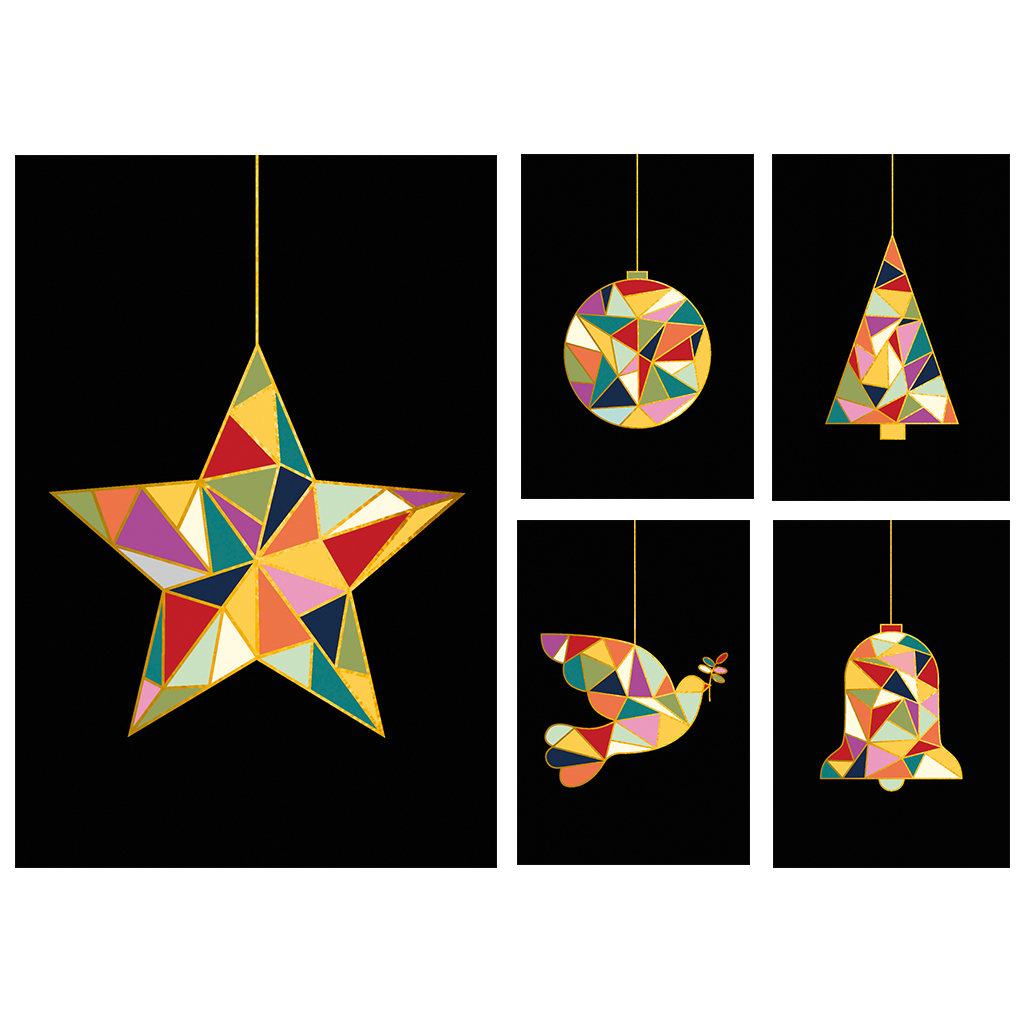 Unicef Kerstkaart - Gouden Driehoekjes, set/10 kaarten, 5 ontwerpen