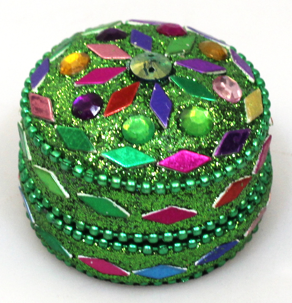 Pillendoosje Glitter groen, rond D 5 cm - Sarana, India