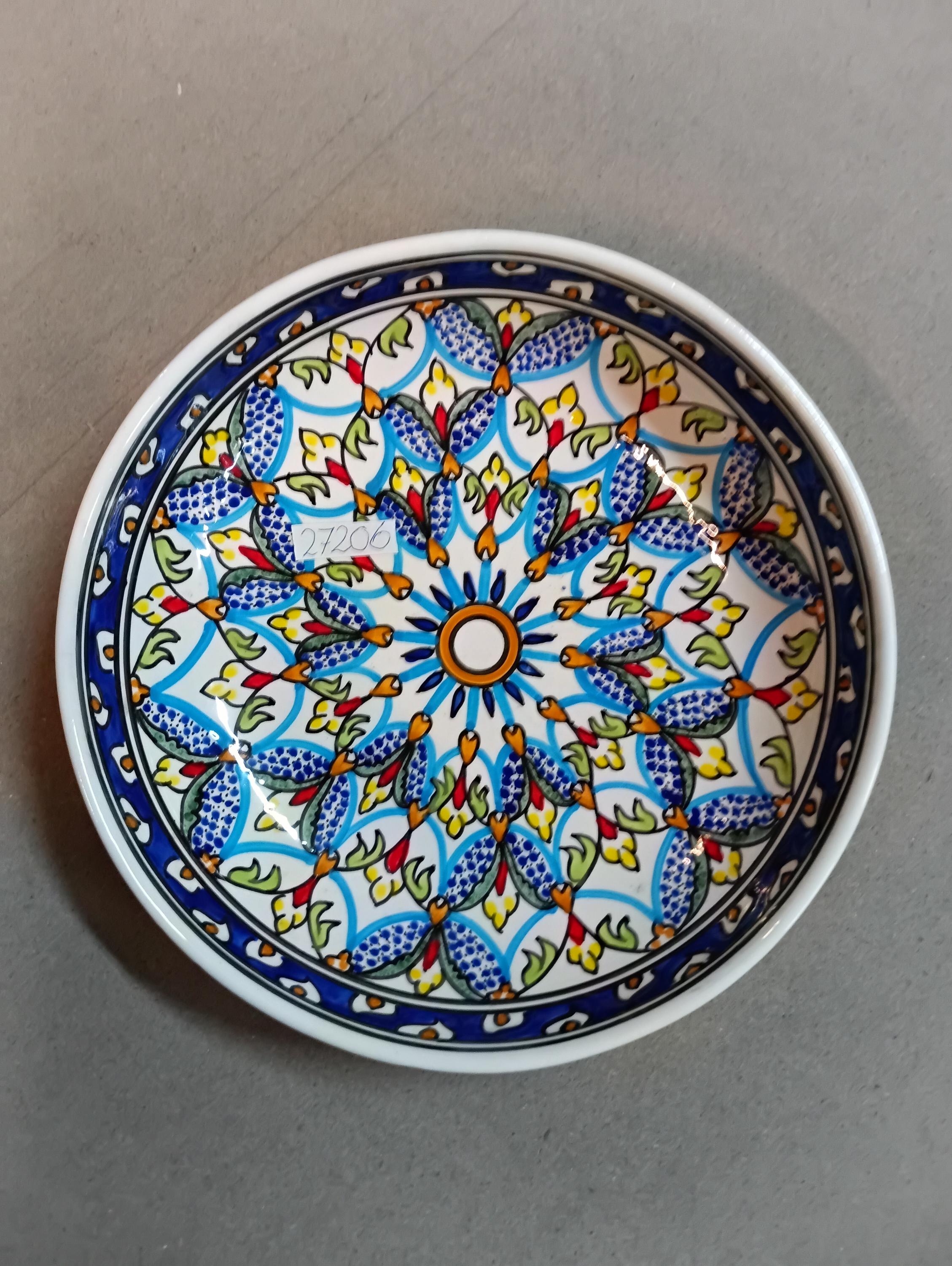 Schaal D 25 cm, diep 7 cm, Dina beschilderd aardewerk, blauwe rand - Tunesie