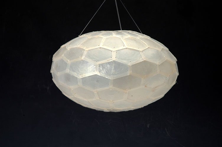 De doorzichtige capiz-schelp is aan de binnenkant van prachtig parelmoer, het doorzichtige materiaal geeft mooie lichteffecten