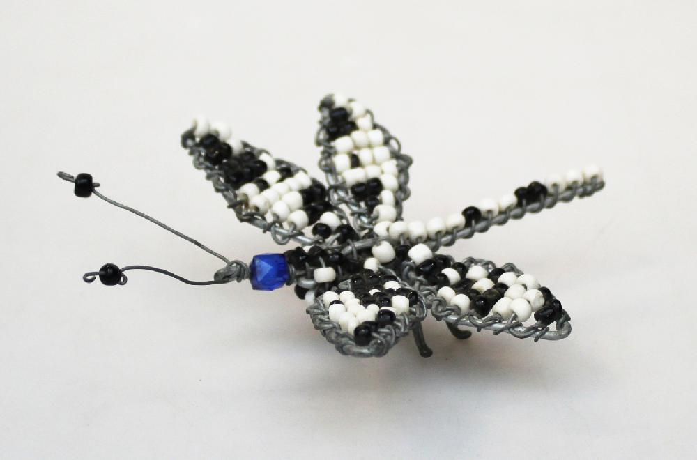 Libel ijzerdraad en kralen, l-b-h = 10 x 9 x 4 cm, vleugel zwart-wit - BrGH Tanzania